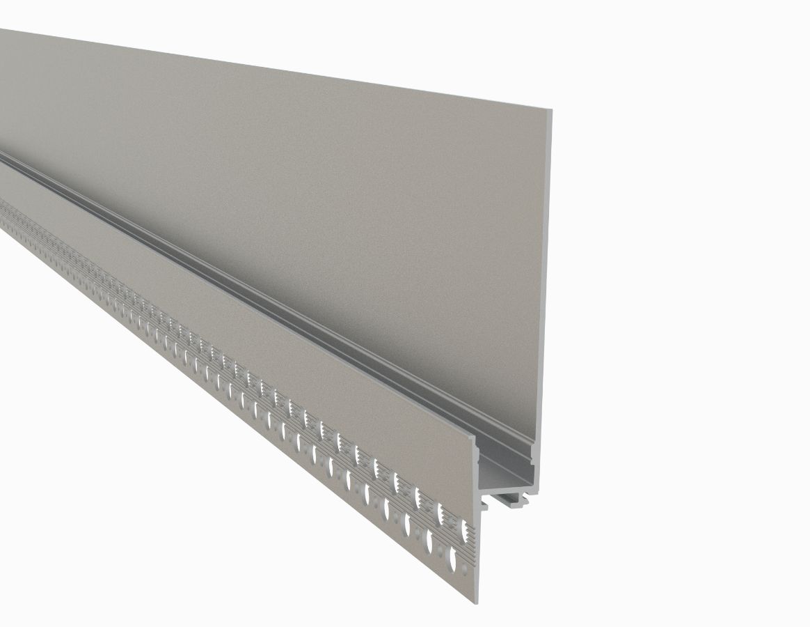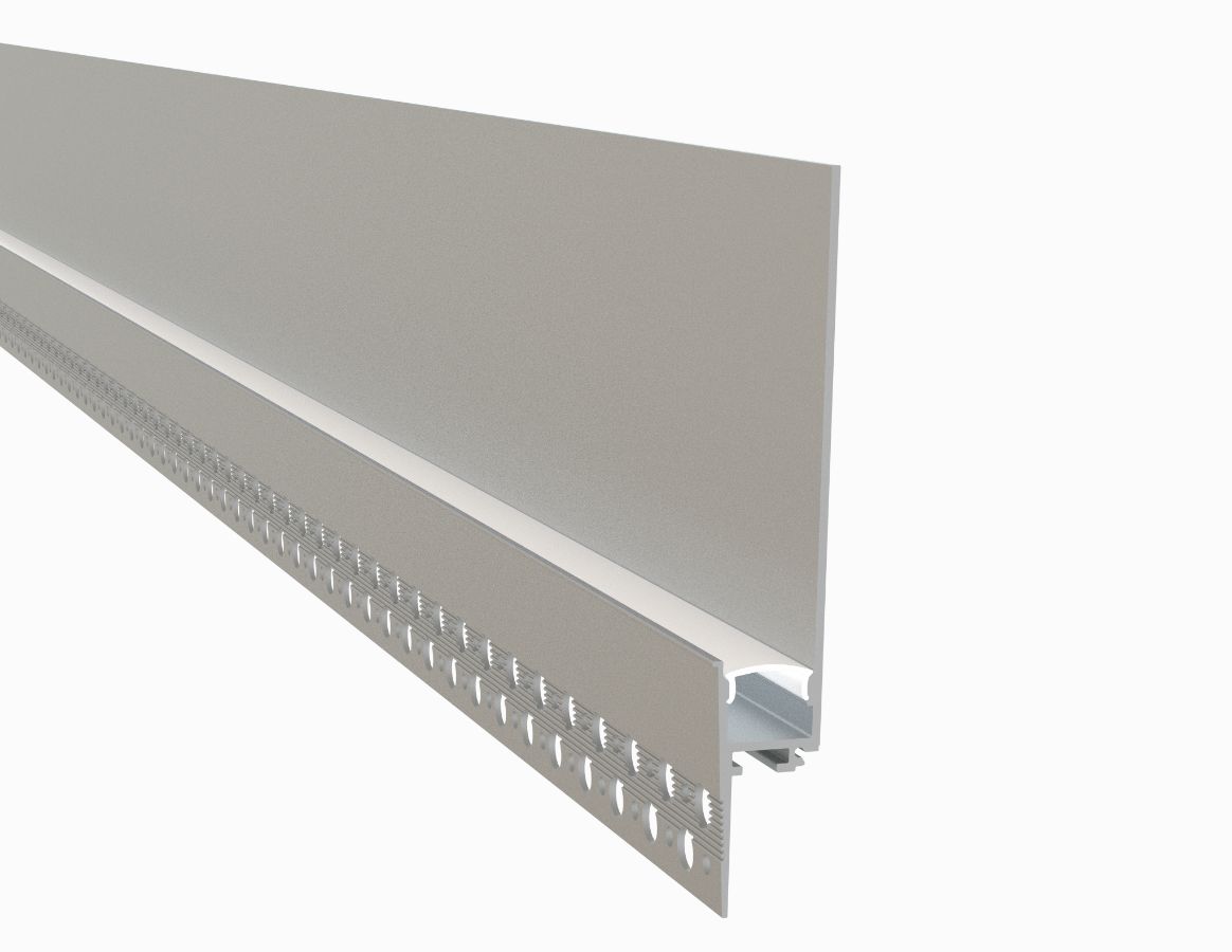 The 650 Series LED Channel is a Trimless Mud-In option for drywall installations, suitable for LED strips up to 12.3 mm (0.48'') wide. It allows for a seamless, recessed look through plaster-in mounting and is intended for use with 16mm (5/8'') drywalls. The channel can be utilized to add LED lighting to a baseboard or create a cove light effect with the light directed towards the ceiling. The channel enhances cooling and increases the longevity of the LED strip.